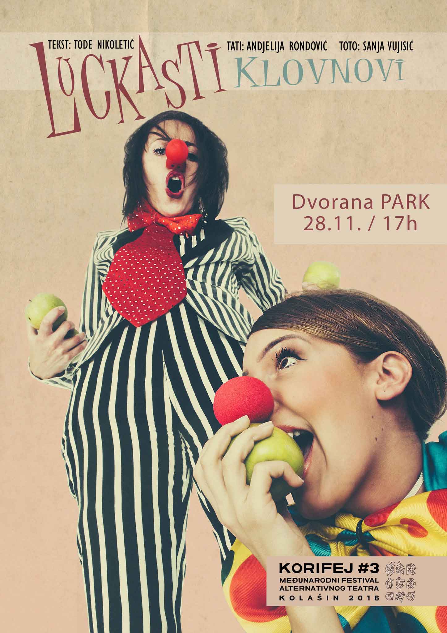 Po tekstu Todeta Nikoletića, jednog od najpoznatijih pisaca za djecu u regionu, predstava “Luckasti klovnovi” je interaktivna predstava za djecu od 3 do 9 godina i govori o neobičnim klovnovima Totu i Tatiju koji se kroz šašave borbe nadjačavanja, spletki, smicalica dokazuju publici u luckastoj borbi za titulu najboljeg. Sukob u kome se djeca dovode do spoznaje da koliko god ima tuge na svijetu, sreća i radost treba da osvoje naša srca i da je za dobru zabavu potrebno ne jedan, ne dva, nego 1000 klovnova. I, naravno, da je prijateljstvo važnije od takmičenja.